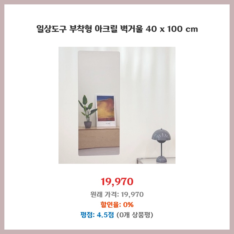 일상도구 부착형 아크릴 벽거울 40 x 100 cm