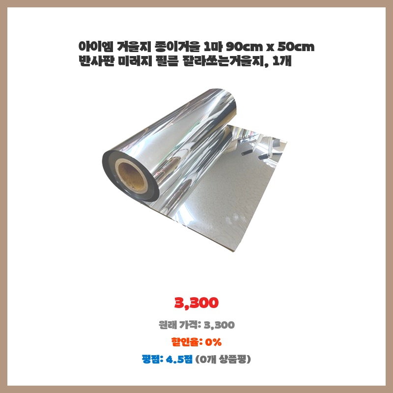 아이엠 거울지 종이거울 1마 90cm x 50cm 반사판 미러지 필름 잘라쓰는거울지, 1개