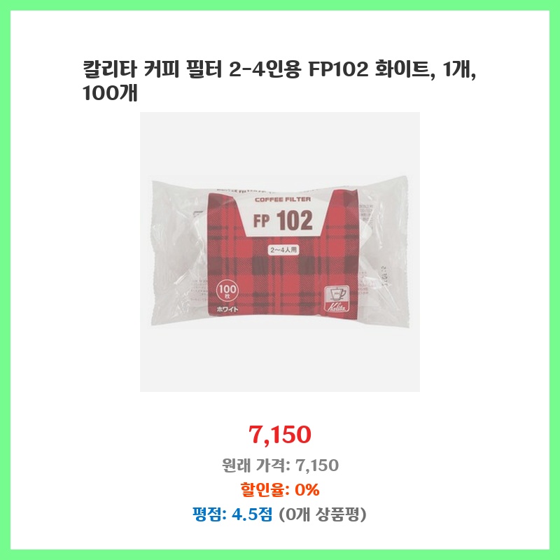 칼리타 웨이브 드리퍼와 함께 사용하려 24인용 필터를 찾던 중 가격 대비 좋은 품질과 넉넉한 수량(100개)에 구매했습니다. 화이트 색상도 깔끔하고 좋습니다. 일회용이라 편리하며, 커피 맛에 영향을 미치지 않는다는 점이 마음에 들었습니다.