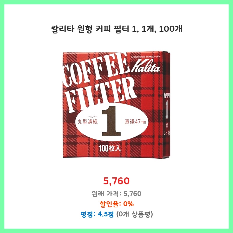 칼리타 원형 필터는 깔끔한 맛 추출로 유명해서 꾸준히 사용 중입니다. 100개들이라 경제적이고, 종이 재질도 괜찮아서 재구매했습니다. 다른 필터에 비해 펄프의 두께가 적당해서 커피 향을 잘 잡아주는 것 같습니다.