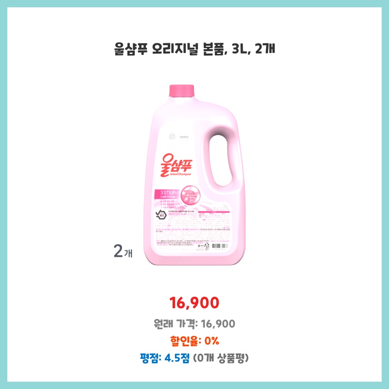 울샴푸는 섬유 손상 없이 깨끗하게 세탁하는 데 효과적이라는 평이 많아서 구매했습니다. 대용량이라 경제적이고, 오리지널 제품이라 믿음직스러웠습니다. 두 개 세트라 더욱 실용적이라고 생각했습니다.