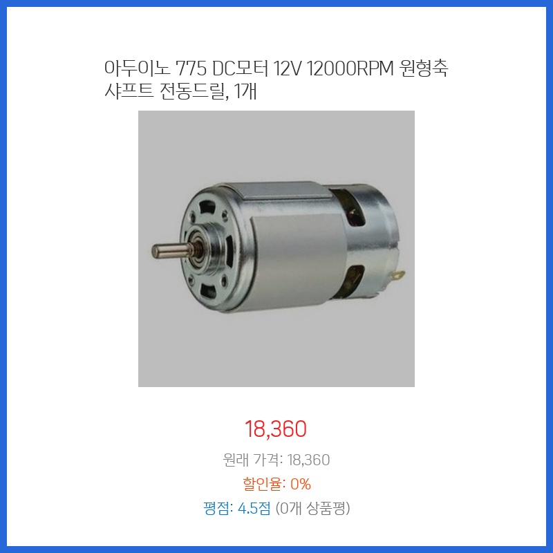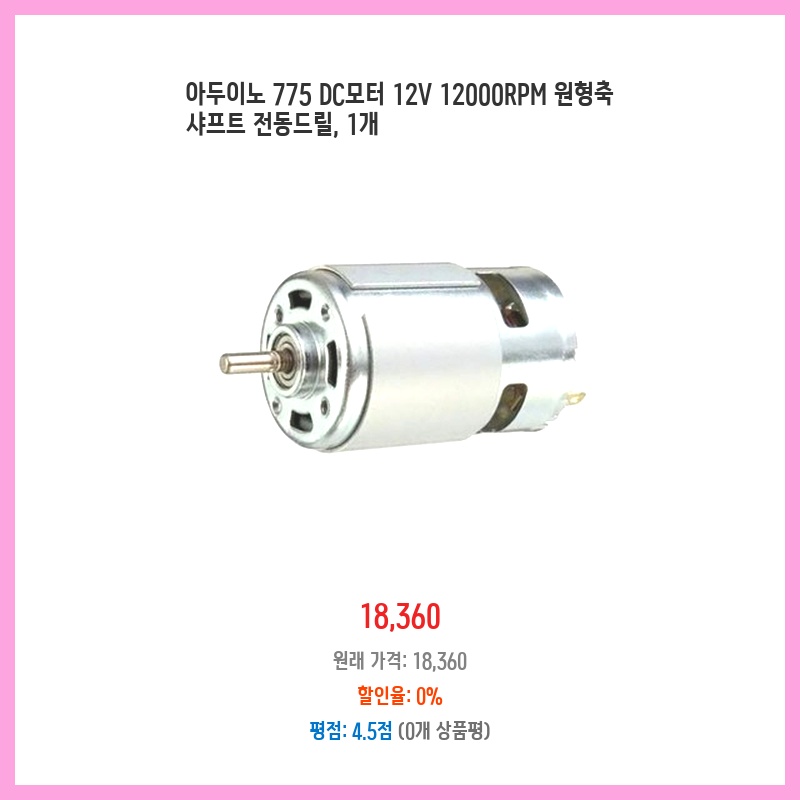 12V 12000RPM의 높은 회전력이 필요한 프로젝트에 적합하여 구매했습니다. 원형축 샤프트는 다양한 부착물 사용에 용이하고, 아두이노 호환으로 제어가 편리할 것으로 예상됩니다. 가격 대비 성능이 우수해 보였습니다.