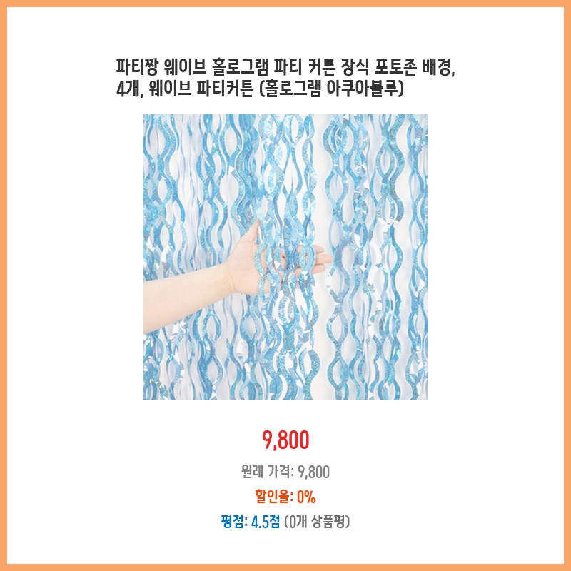 파티 분위기를 확실하게 내고 싶어서 구매했습니다. 홀로그램 소재라 은은하게 빛나고, 웨이브 디자인이 사진 찍기에 예뻐 보였습니다. 4개 세트라 포토존을 넉넉하게 꾸밀 수 있는 점도 좋았습니다. 가격 대비 만족스러운 품질입니다.