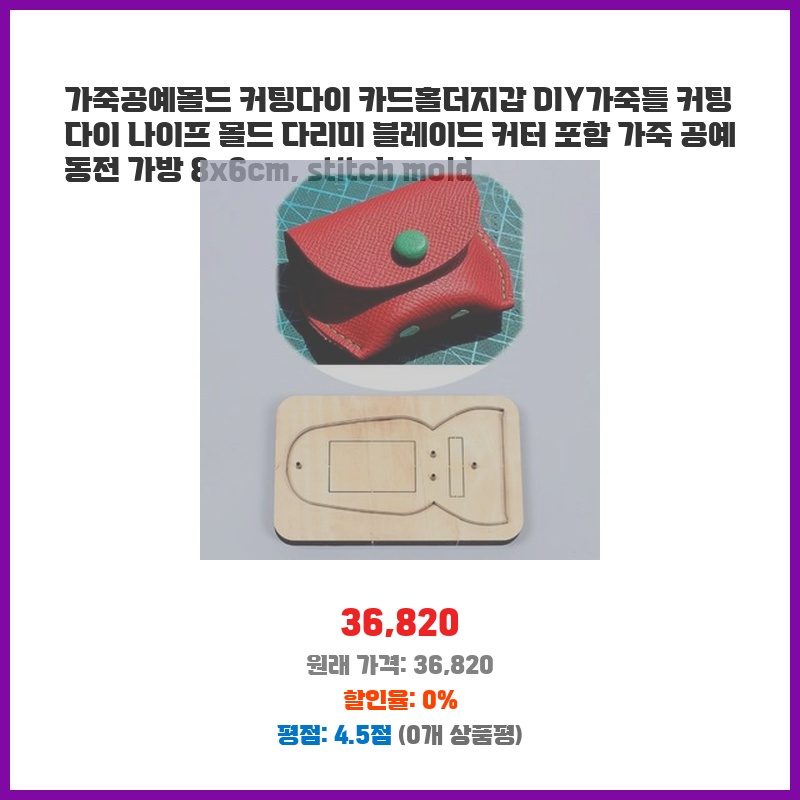 핫 아이템 가죽공예몰드 커팅다이 카드홀더지갑 DIY가죽틀 커팅 다이 나이프 몰드 다리미 블레이드 커터 포함 가죽 공예 동전 가방 8x6cm sti... 마감 임박