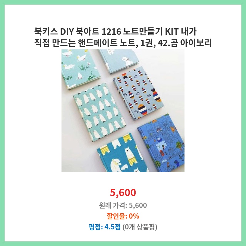 북키스 DIY 북아트 1216 노트만들기 KIT 내가 직접 만드는 핸드메이트 노트, 1권, 42.곰 아이보리