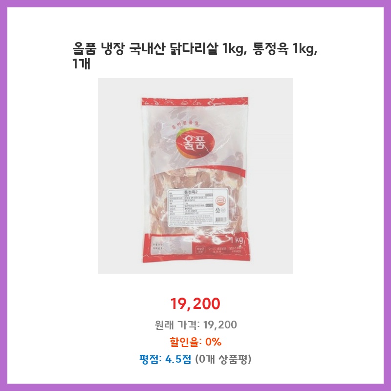 올품닭다리살, 국내산닭다리살, 닭다리살1kg, 냉장닭고기, 통닭정육, 닭고기, 올품