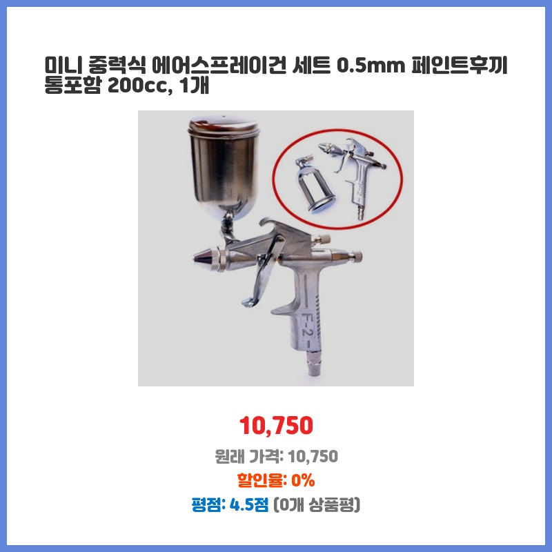 미니스프레이건, 에어스프레이건, 페인트후끼, 중력식스프레이건, 0.5mm노즐, 200cc, 스프레이건세트