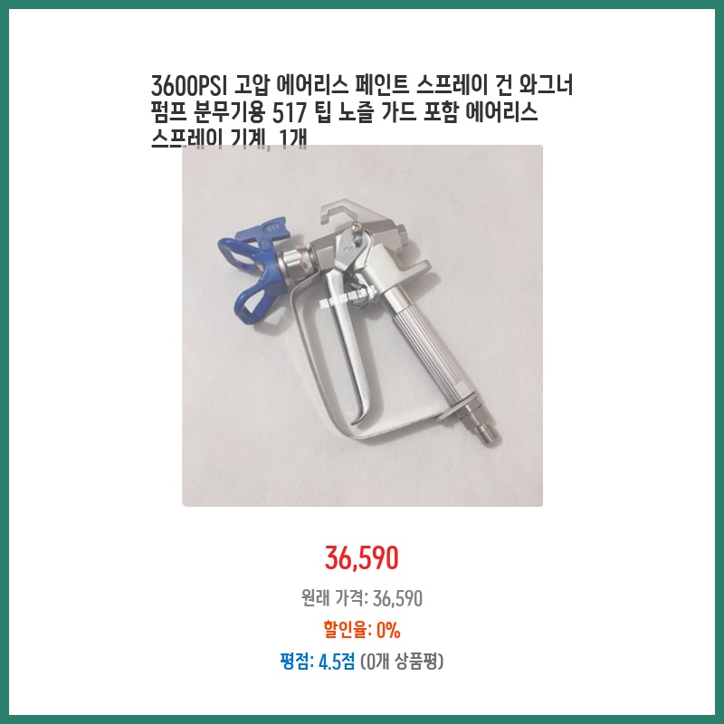와그너 펌프와 호환되는 3600PSI 고압 노즐이 필요했습니다. 기존 노즐이 마모되어 도장 품질이 떨어졌는데, 이 제품으로 교체 후 분사력이 향상되어 작업 효율이 높아졌습니다. 팁 노즐 가드도 포함되어 관리가 편리합니다.
