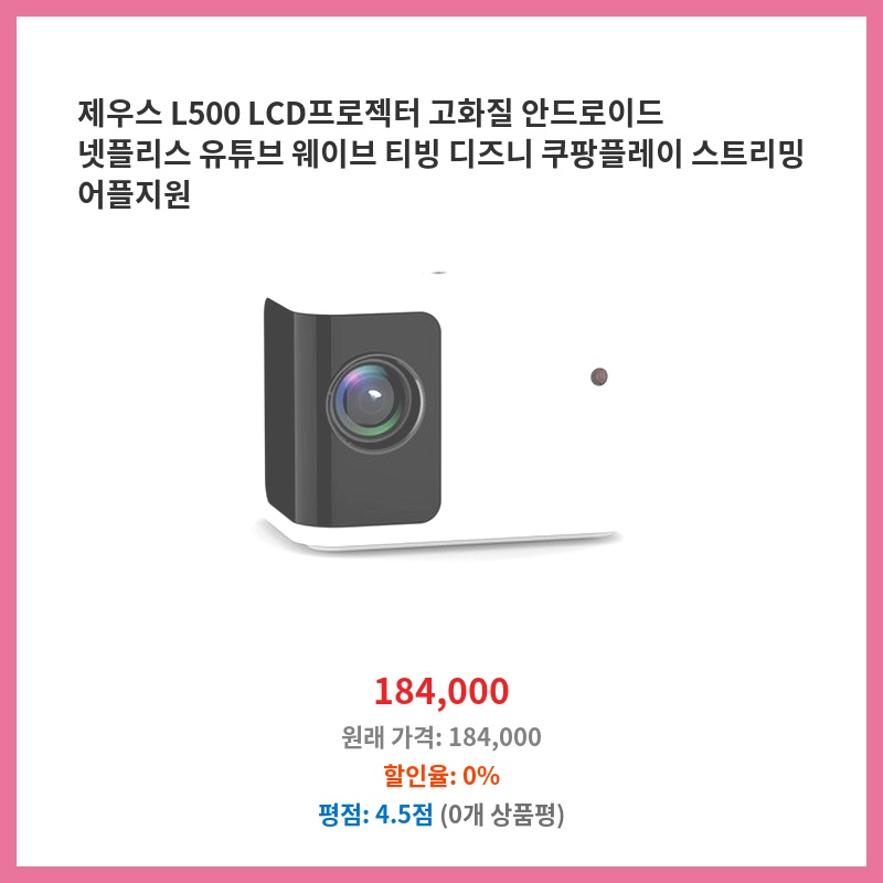 제우스 L500 LCD프로젝터 고화질 안드로이드 넷플리스 유튜브 웨이브 티빙 디즈니 쿠팡플레이 스트리밍 어플지원