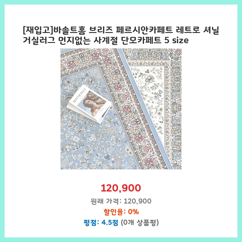 [재입고]바솔트홈 브리즈 페르시안카페트 레트로 셔닐 거실러그 먼지없는 사계절 단모카페트 5 size