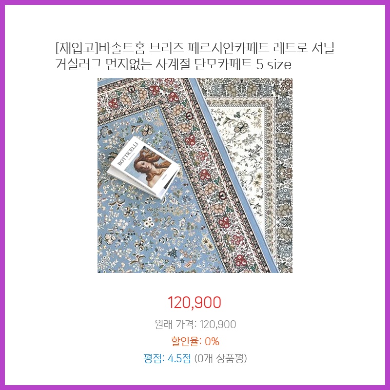 거실이 넓어 큰 카펫이 필요했는데, 특대형 사이즈에 페르시안 디자인이 마음에 들었습니다. 사계절 사용 가능하다는 점도 매력적이었고, 가격 대비 품질이 괜찮아 구매했습니다.