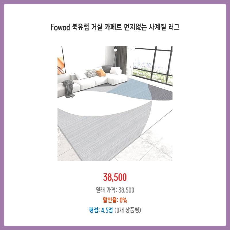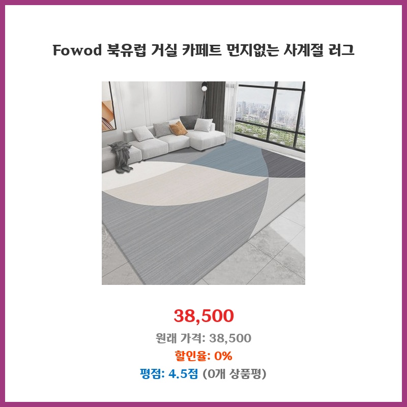 북유럽 디자인이 마음에 들었고, 사계절 사용 가능하다는 점이 매력적이었습니다. 가격 대비 품질도 괜찮아 보였고, 거실 분위기 전환에 도움이 될 것 같아 구매했습니다. 두께도 적당하고, 관리가 어렵지 않아 실용적입니다.