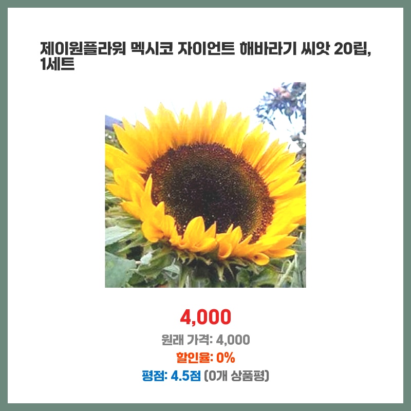 제이원플라워 멕시코 자이언트 해바라기 씨앗 20립, 1세트