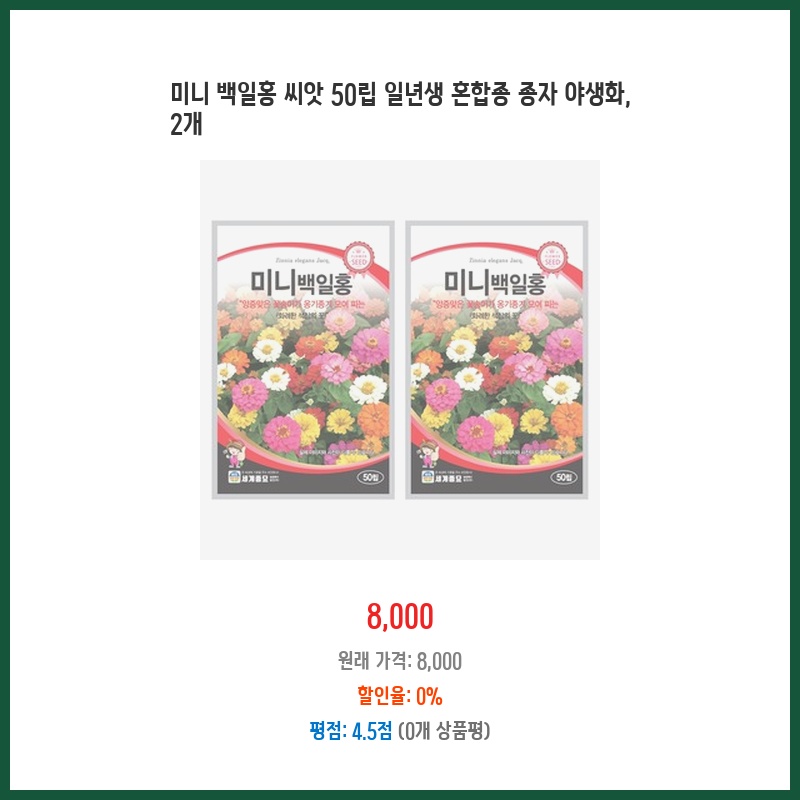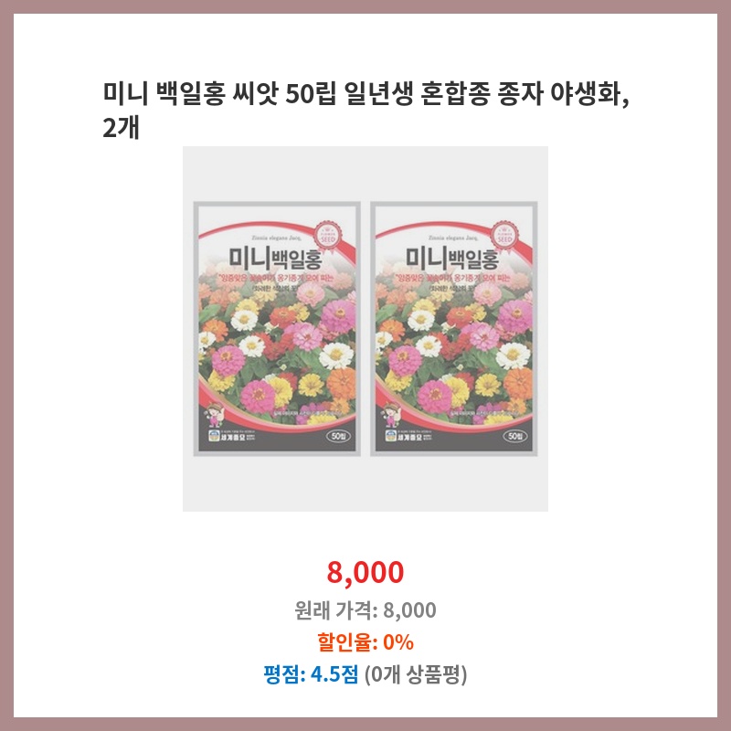 미니 백일홍 씨앗 50립 일년생 혼합종 종자 야생화, 2개