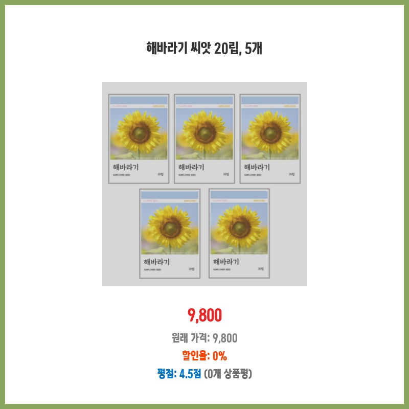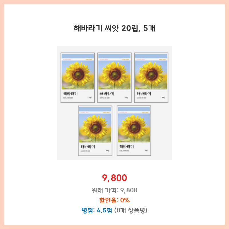 해바라기 씨앗 20립, 5개