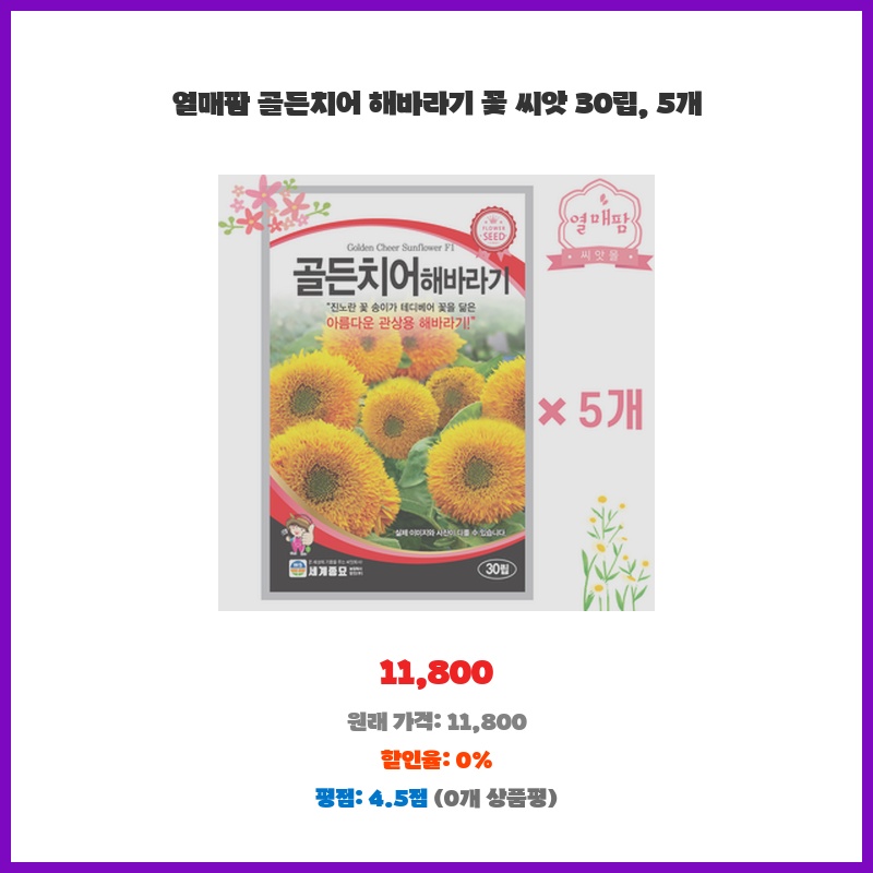 열매팜 골든치어 해바라기 꽃 씨앗 30립, 5개