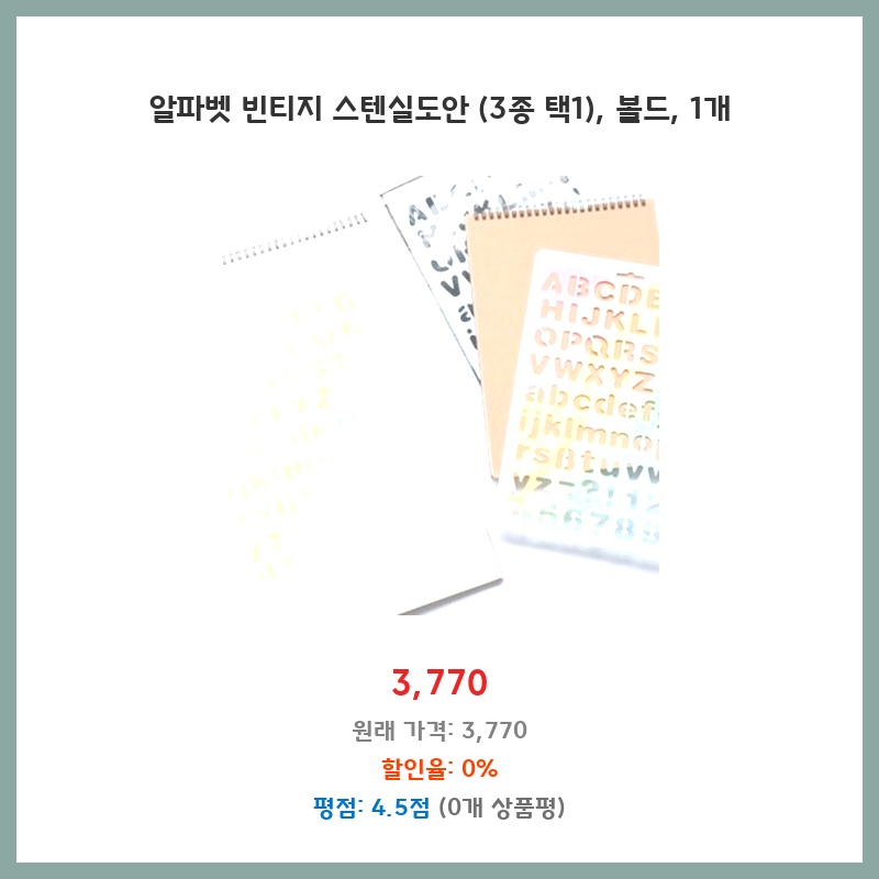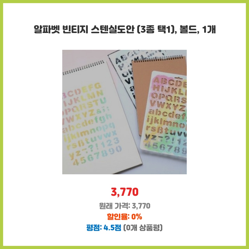 빈티지한 느낌의 스텐실 도안을 찾던 중 디자인이 마음에 들어 구매했습니다. 볼드체라 가독성도 좋고, 3종 중 선택할 수 있는 점도 좋았습니다. 가격도 적당한 편이라 부담 없이 사용할 수 있을 것 같습니다.