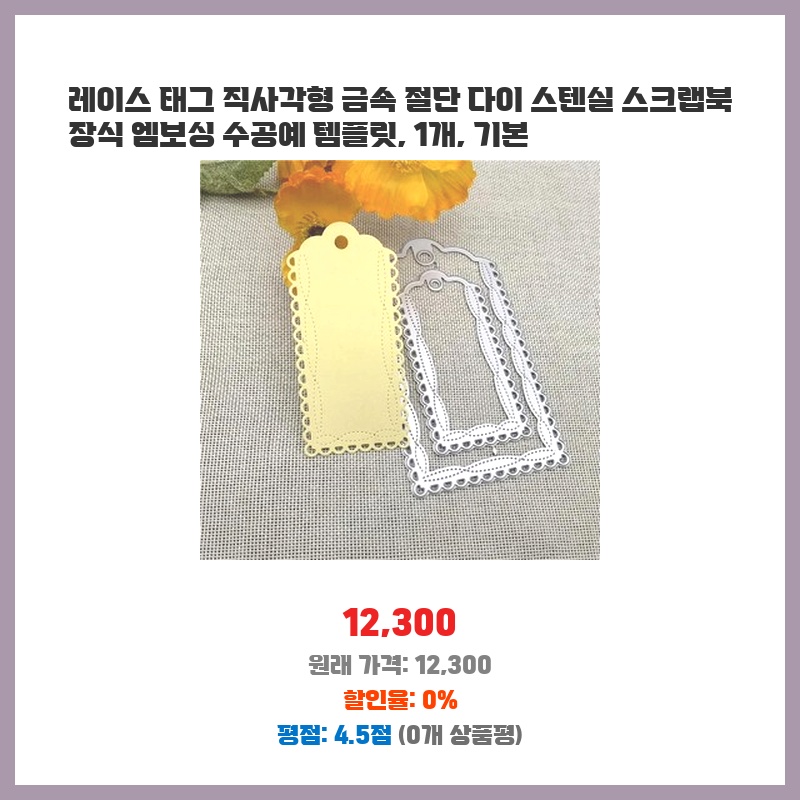 깔끔한 레이스 패턴이 마음에 들어 구매했습니다. 금속 재질이라 여러 번 사용해도 망가질 걱정 없고, 스크랩북 장식이나 카드 만들기에 활용도가 높을 것 같아요. 다양한 크기의 레이스를 만들 수 있어 활용성이 좋습니다.