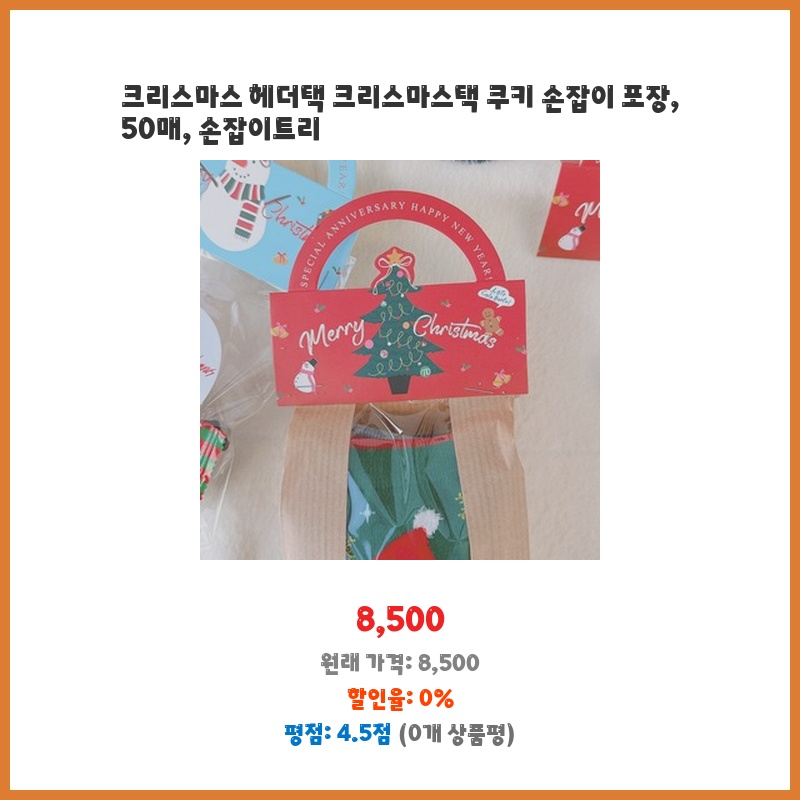 크리스마스 헤더택 크리스마스택 쿠키 손잡이 포장, 50매, 손잡이트리