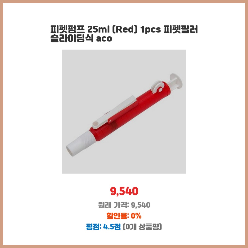 실험실에서 25ml 피펫을 자주 사용하는데, 기존 수동 피펫필러가 불편해서 구매했습니다. 슬라이딩 방식이라 사용이 편리하고, 빨간색이라 시각적으로도 찾기 쉬워 실험 효율이 높아졌습니다. 손목 피로도도 줄어들어 만족스럽습니다.