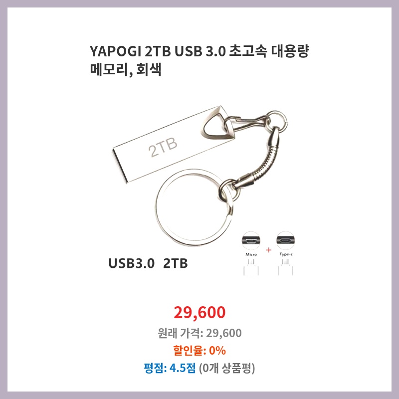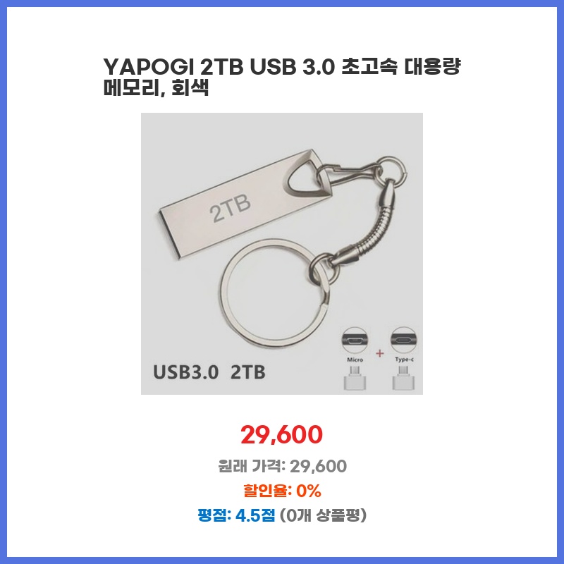 YAPOGI 2TB USB 3.0 초고속 대용량 메모리, 회색