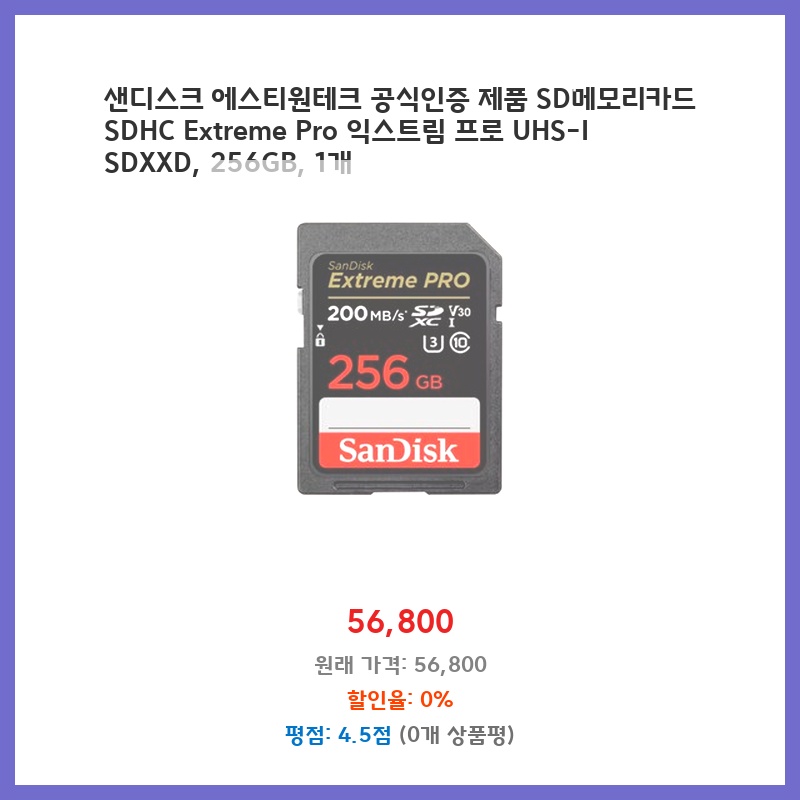 실시간 인기 샌디스크 에스티원테크 공식인증 제품 SD메모리카드 SDHC Extreme Pro 익스트림 프로 UHS-I SDXXD 256G... 포인트 쏠쏠한 제품