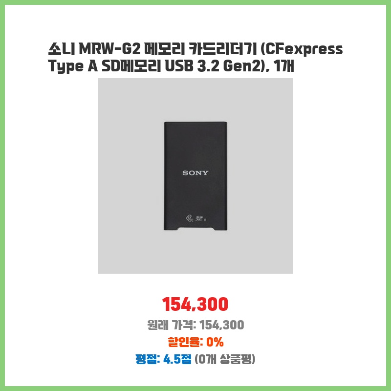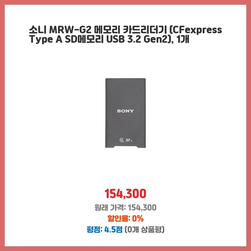 소니 MRW-G2 메모리 카드리더기 (CFexpress Type A SD메모리 USB 3.2 Gen2), 1개