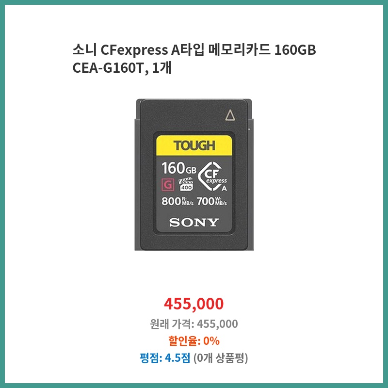 소니 CFexpress A타입 메모리카드 160GB CEA-G160T, 1개