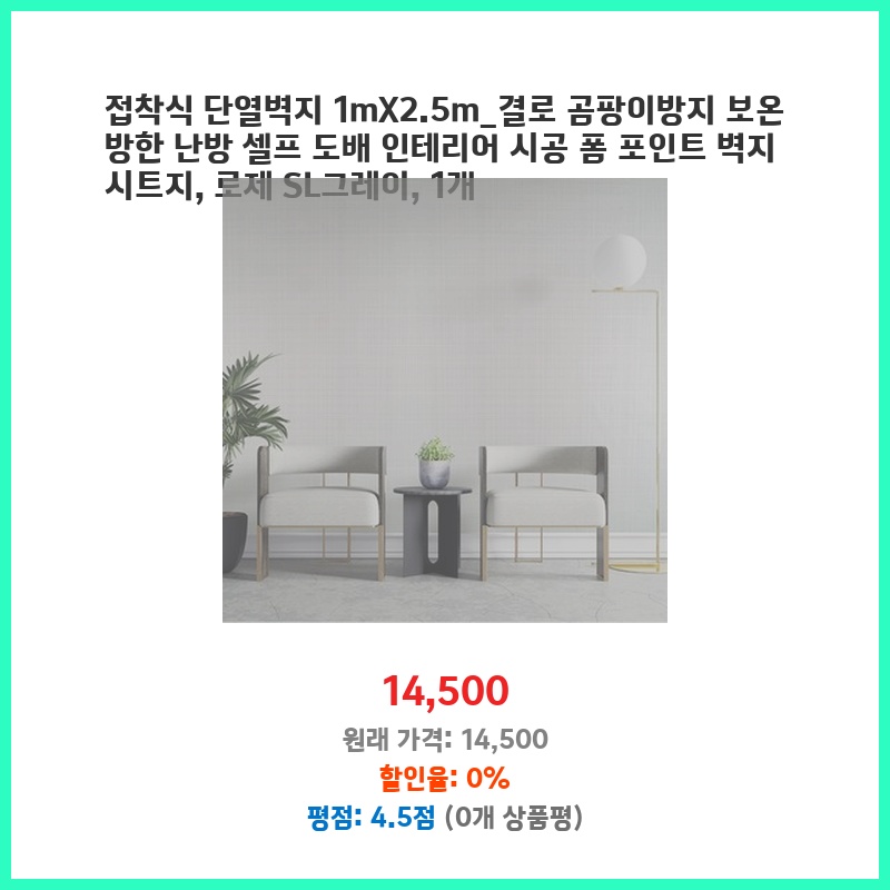 원룸의 겨울철 추위와 결로가 심해서 단열 효과가 있는 벽지를 찾던 중, 가격 대비 괜찮은 크기에 방한, 결로방지 기능까지 있는 이 제품을 선택했습니다. 셀프 시공도 가능하다고 해서 부담 없이 구매했습니다.