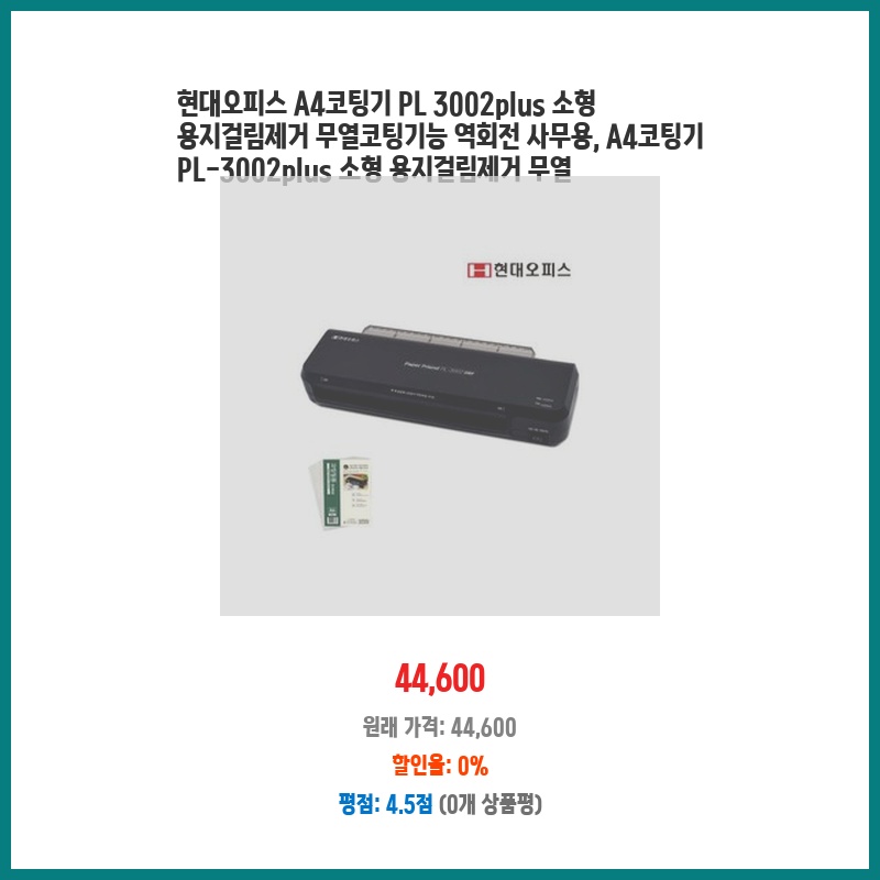셀러 추천 현대오피스 A4코팅기 PL 3002plus 소형 용지걸림제거 무열코팅기능 역회전 사무용 A4코팅기 PL-3002plus 소형 용지걸림제거 무열 추천