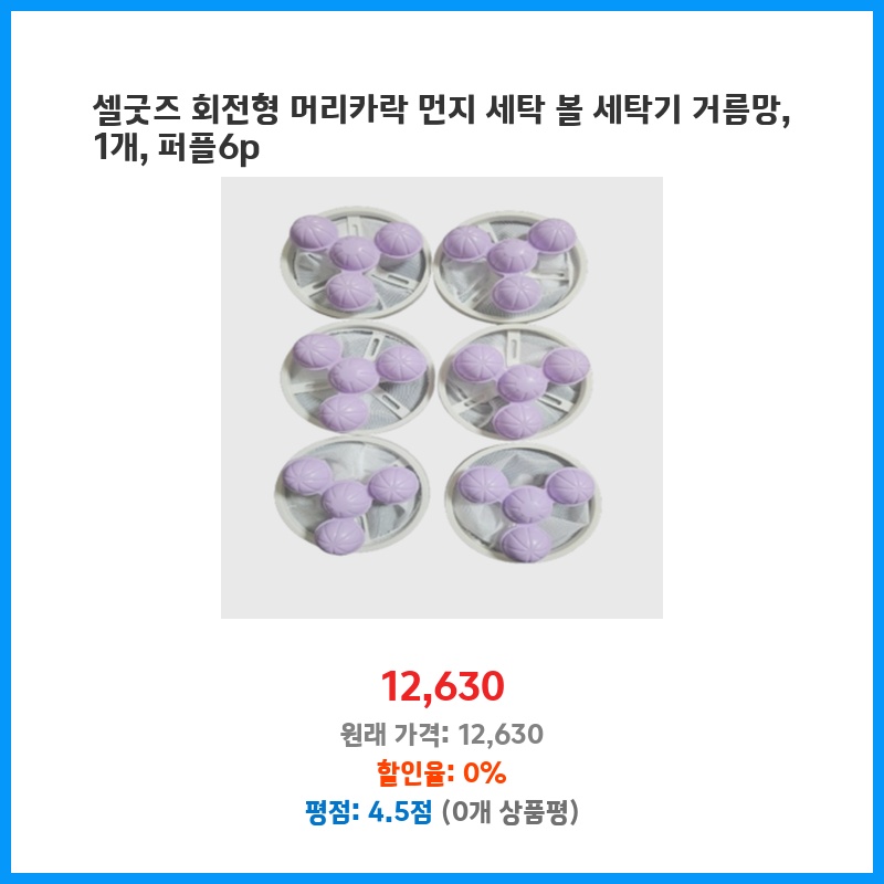 셀굿즈 회전형 머리카락 먼지 세탁 볼 세탁기 거름망, 1개, 퍼플6p