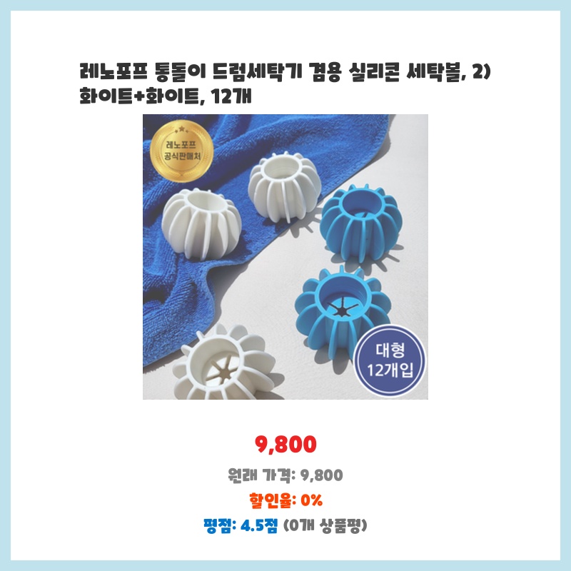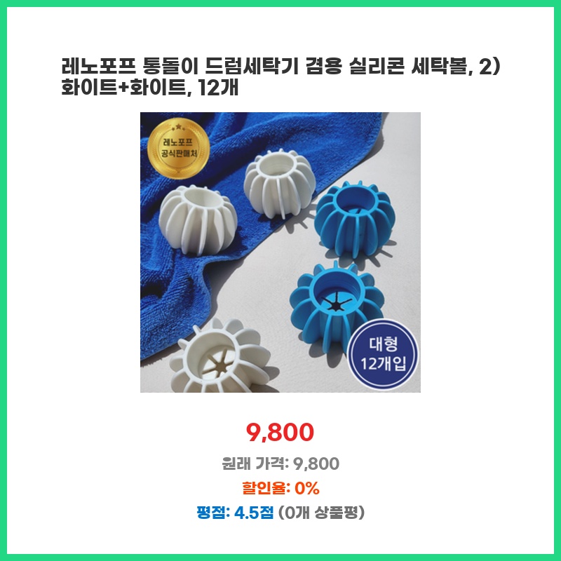 통돌이 세탁기의 세탁력을 높이고 옷감 손상을 줄이기 위해 구매했습니다. 실리콘 소재라 섬세한 옷감에도 안전하고, 12개나 들어있어 오래 사용할 수 있을 것 같아 만족스럽습니다. 세탁볼 추가로 세탁 시간 단축 효과도 기대하고 있습니다.