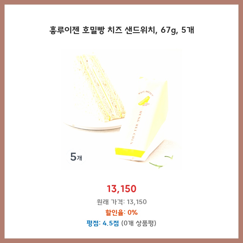 생각보다 호밀빵이 훨씬 고소하고 맛있었습니다! 치즈와의 조합도 좋았고, 아침에 간편하게 먹기 좋았어요. 5개 다 맛있게 먹었습니다.