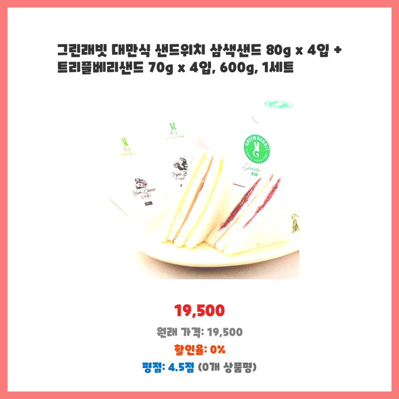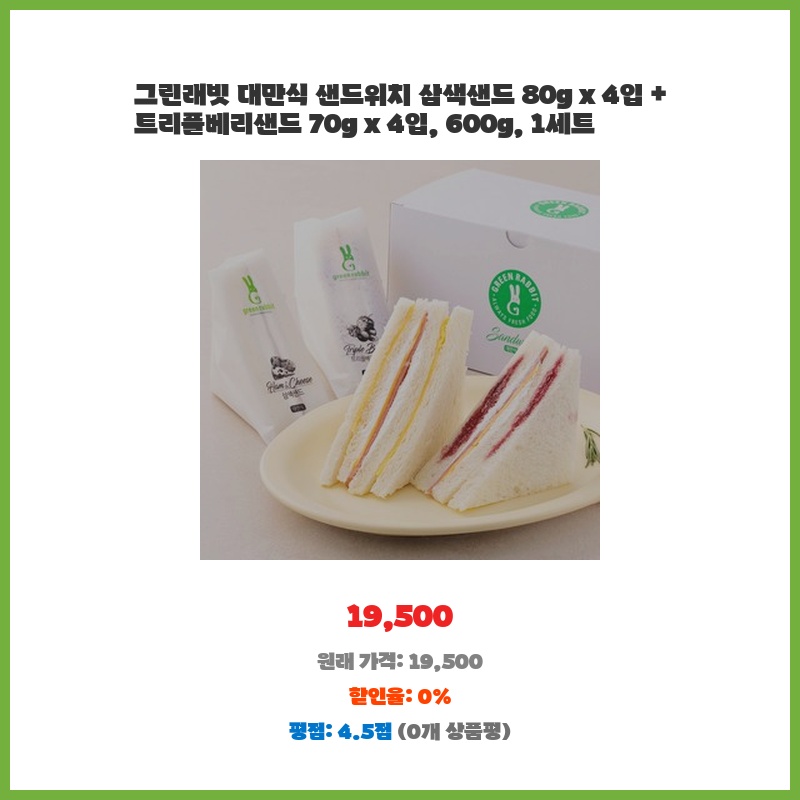 그린래빗 대만식 샌드위치 삼색샌드 80g x 4입 + 트리플베리샌드 70g x 4입, 600g, 1세트