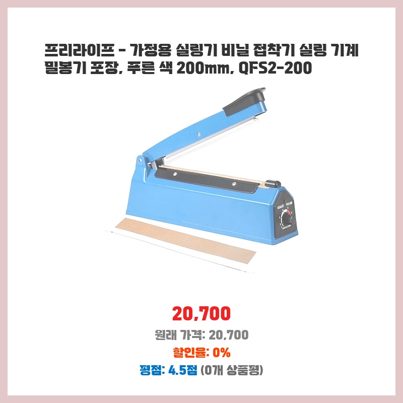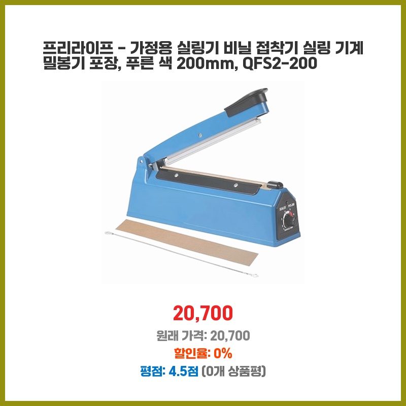 프리라이프 - 가정용 실링기 비닐 접착기 실링 기계 밀봉기 포장, 푸른 색 200mm, QFS2-200