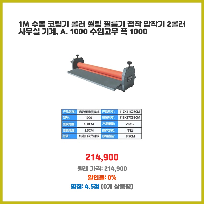 즉시 구매 1M 수동 코팅기 롤러 필름기 압착기 접착 씰링 기계 100cm 라미네이팅 A. 1000 이 가격에 놓치면 후회