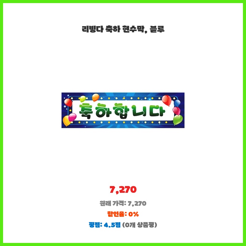 깔끔한 블루 색상과 큼지막한 글씨체가 마음에 들어 축하 분위기를 더욱 돋보이게 해줄 현수막을 찾던 중 발견했습니다. 가격도 적당하고, 사진처럼 튼튼해 보여서 구매했습니다.