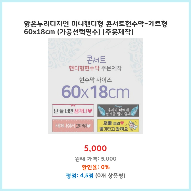 맑은누리디자인 미니핸디형 콘서트현수막-가로형 60x18cm (가공선택필수) [주문제작]