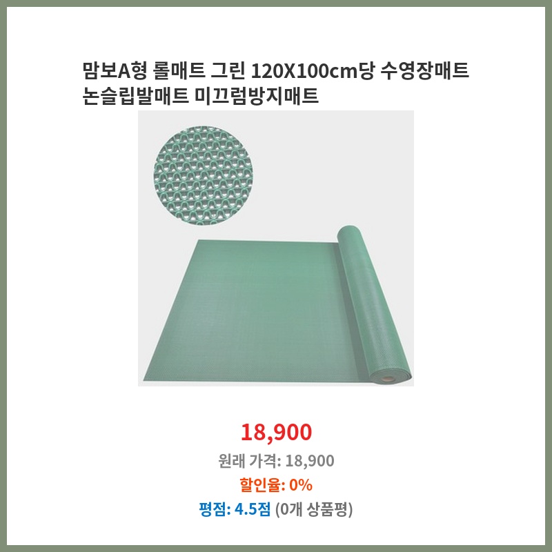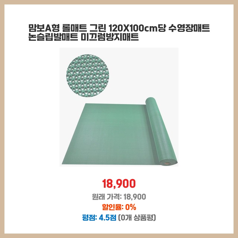 맘보A형 롤매트 그린 120X100cm당 수영장매트 논슬립발매트 미끄럼방지매트