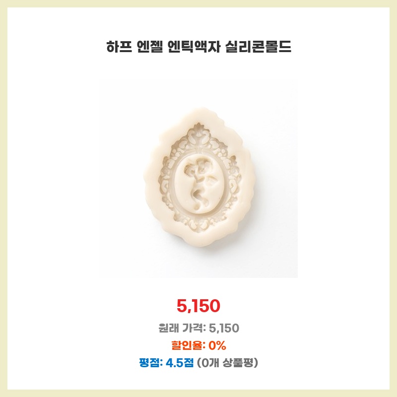 엔틱한 디자인의 액자를 만들고 싶어서 구매했습니다. 실리콘 몰드라 깨끗하게 탈형이 되고, 여러 번 재사용할 수 있다는 점이 매력적이었습니다. 디테일한 하프 엔젤 디자인이 마음에 들었고, 가격도 적당했습니다.