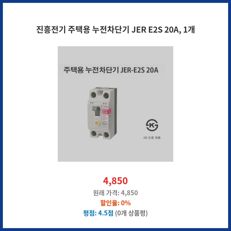 진흥전기 주택용 누전차단기 JER E2S 20A, 1개