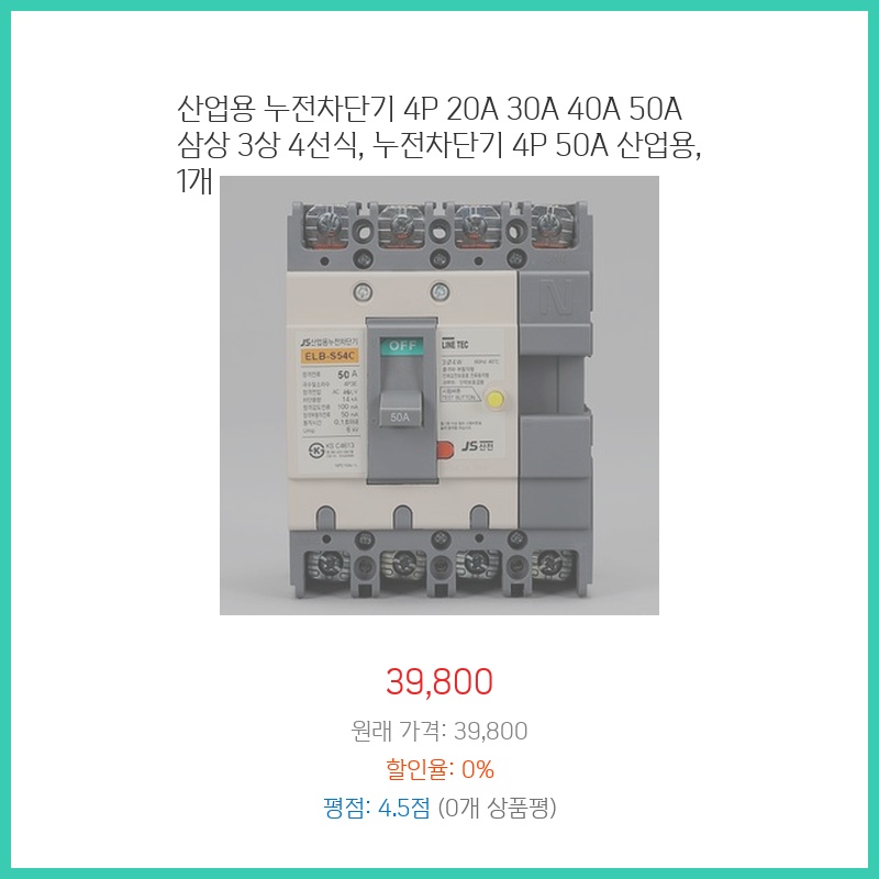 공장 설비 증설로 삼상 전력 사용량이 늘어 안전한 누전 차단이 필요했습니다. 4P 50A 제품은 용량이 충분하고, 산업용이라 내구성이 뛰어나 장기간 안정적으로 사용할 수 있을 것 같아 구매했습니다. 믿을 수 있는 브랜드 제품이라 선택했습니다.