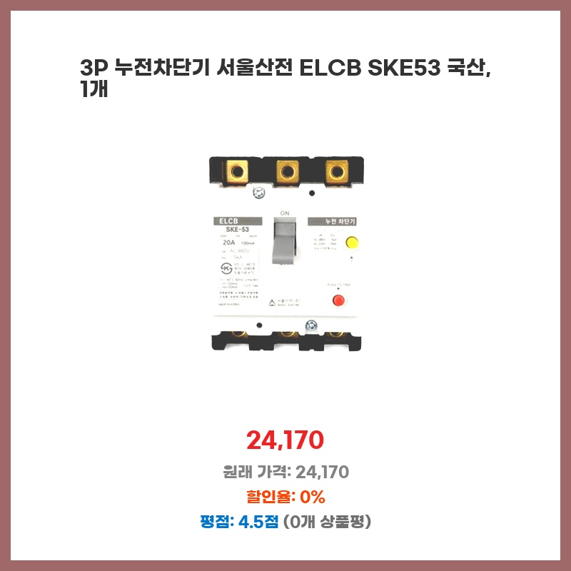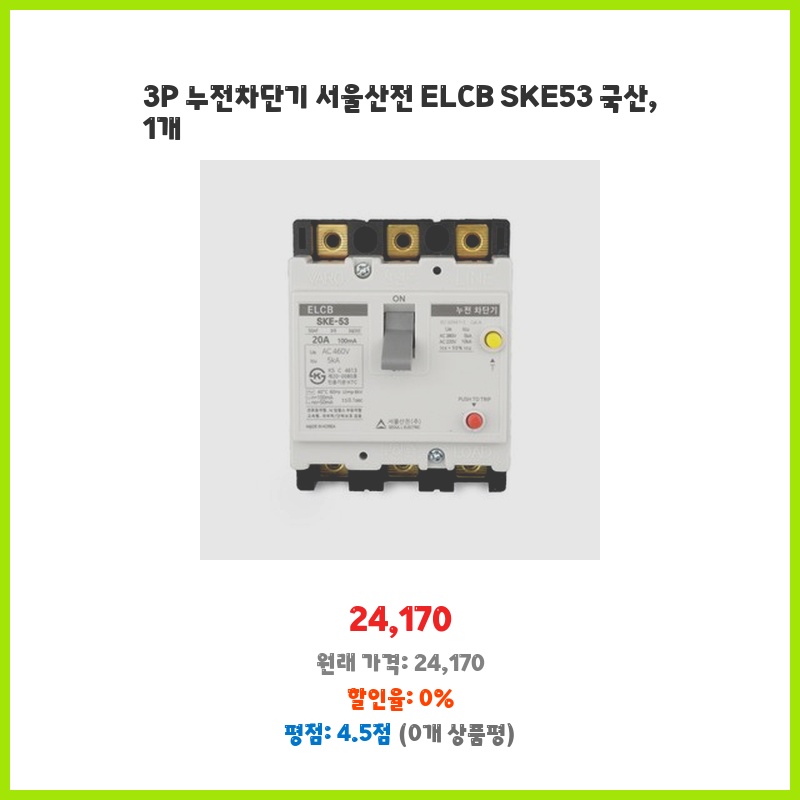 3P 누전차단기 서울산전 ELCB SKE53 국산, 1개