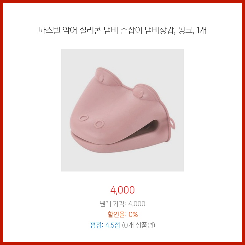 귀여운 디자인에 혹해서 구매했어요. 실리콘 소재라 열에도 강하고, 냄비 잡는 부분이 넓어서 안정감 있게 사용할 수 있을 것 같아요. 핑크 색상도 제 취향이었고요. 세척도 편리할 것 같아 기대됩니다.