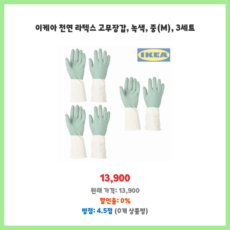 이케아 천연 라텍스 고무장갑, 녹색, 중(M), 3세트