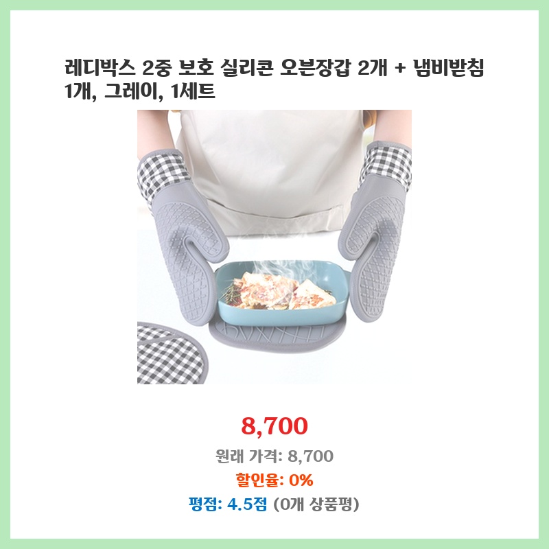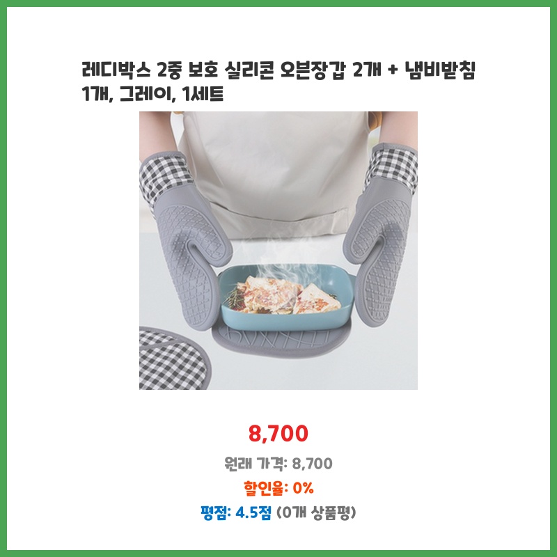 오븐 사용이 잦은데, 열에도 잘 견디고 뜨거운 그릇도 안전하게 잡을 수 있어서 정말 편리해요. 디자인도 예뻐서 주방 분위기까지 살아났습니다!