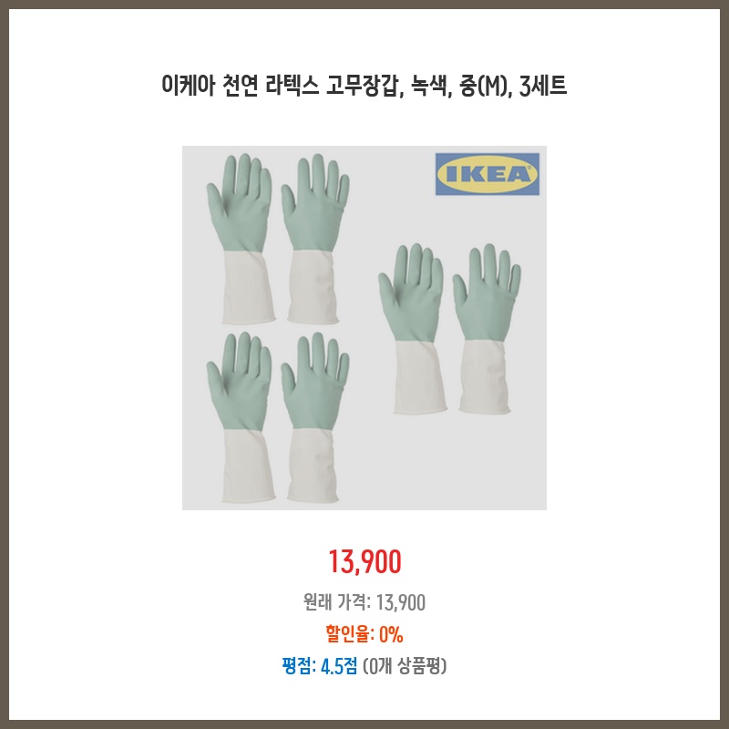 천연 라텍스 소재라 피부에 자극이 덜하고, 3세트라 넉넉하게 사용할 수 있어서 구매했습니다. 일반 고무장갑보다 내구성이 좋아 오래 쓸 수 있을 것 같아 기대됩니다. 중간 사이즈도 손에 잘 맞았습니다.