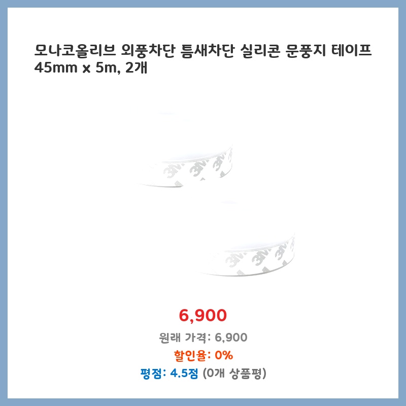 겨울철 찬바람과 벌레 유입이 심해서 문풍지를 찾던 중, 실리콘 소재의 미소라인F 제품이 눈에 띄었습니다. 깔끔한 디자인과 45mm의 적절한 폭, 2개입 구성이 마음에 들어 구매했습니다. 실리콘 소재라 재사용도 가능할 것 같아 경제적입니다.