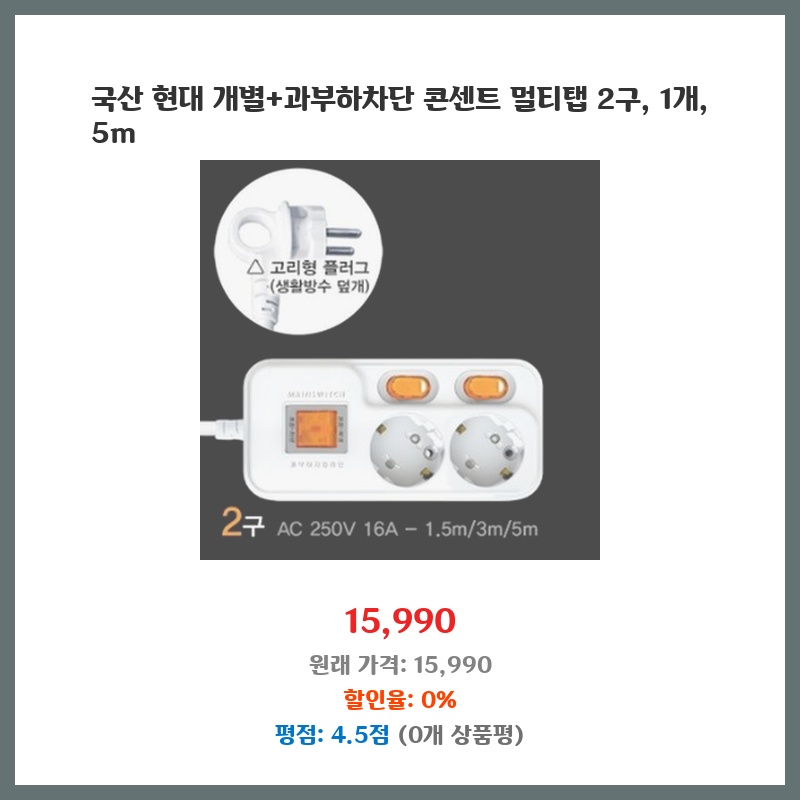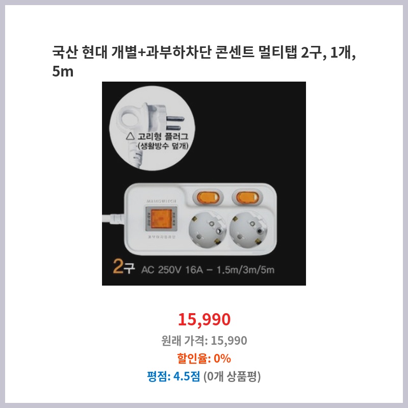 국산멀티탭, 개별스위치멀티탭, 과부하차단멀티탭, 2구멀티탭, 5m멀티탭, 콘센트멀티탭, 현대멀티탭