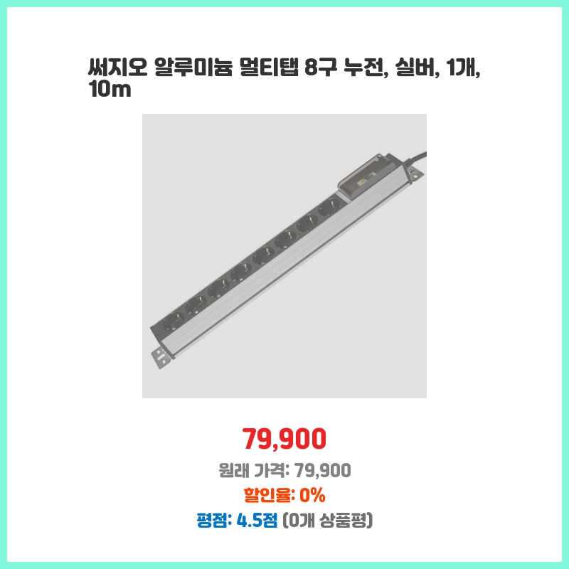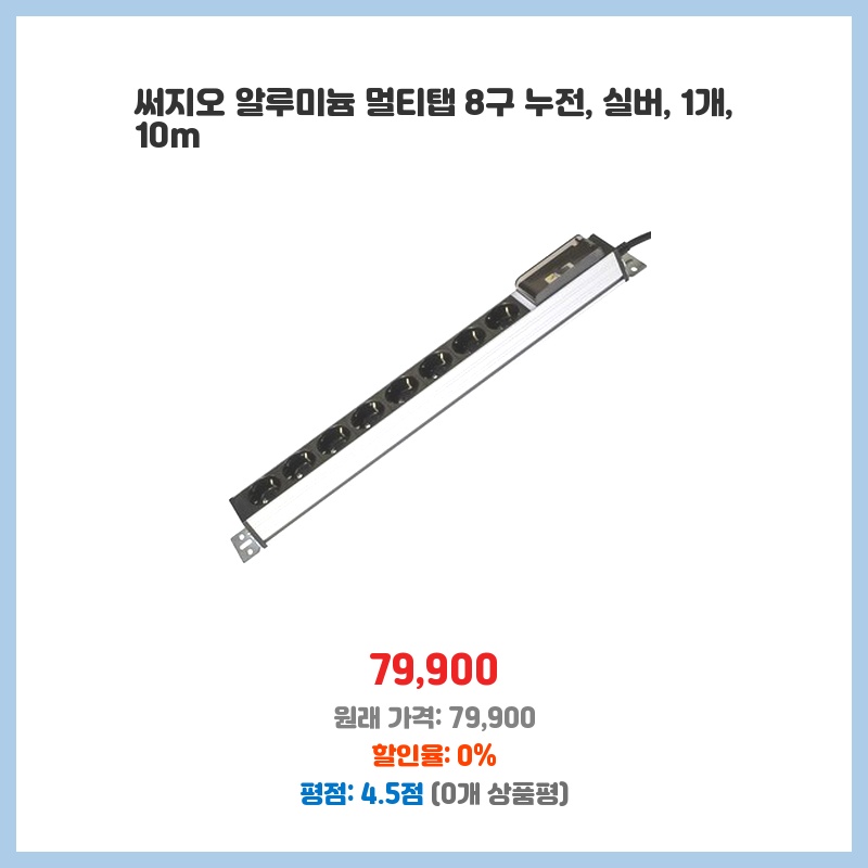 10m 길이라 정말 편리하고, 8구 모두 안정적으로 작동합니다. 알루미늄 재질이 고급스럽고, 무엇보다 누전 차단 기능이 안심돼요. 만족스러운 구매였습니다.